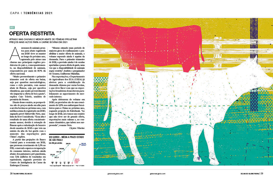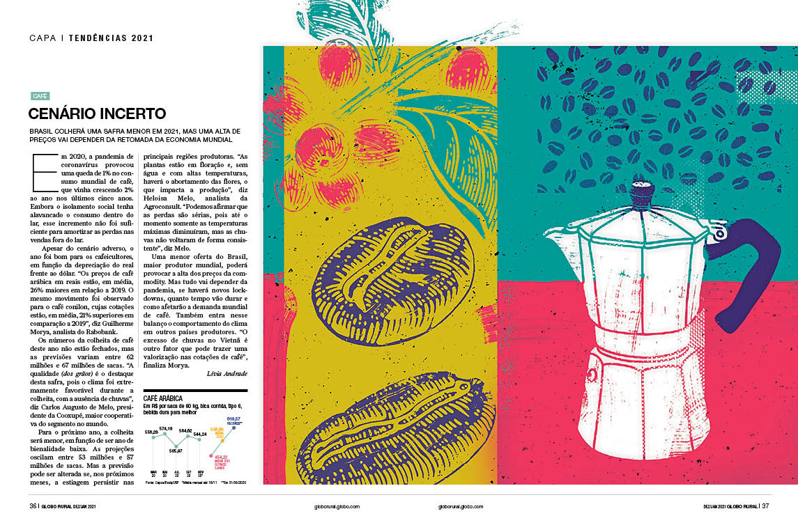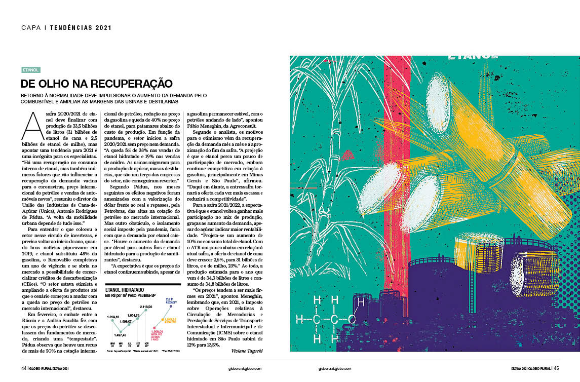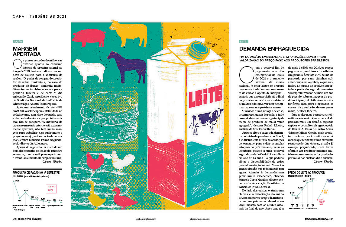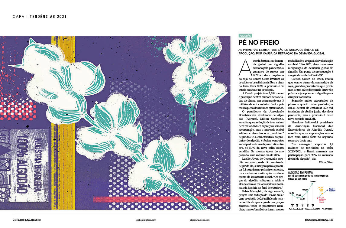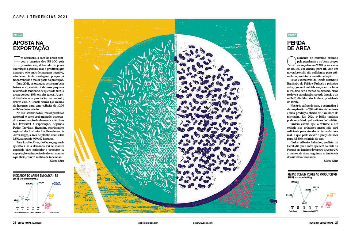Especial da revista Globo Rural sobre as tendências do agropecuário 2021 Verúcio Ferraz - direção de arte Davi Augusto - Ilustrações